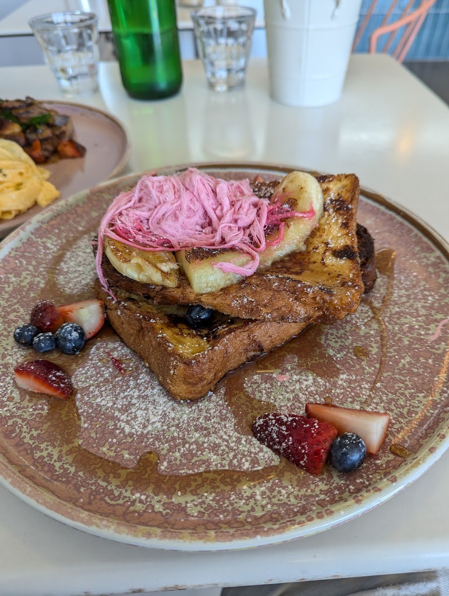 The menu highlights include items like the quesadilla, which balances just the right amount of spice, and the corn and zucchini fritter, a fresh, crispy option that pairs effortlessly with their matcha latte — a combination praised by guests for its harmony of flavors. The brioche French toast and house-made granola also stand out as good brunch choices, with the granola offering a satisfying crunch without being overly sweet or heavy.